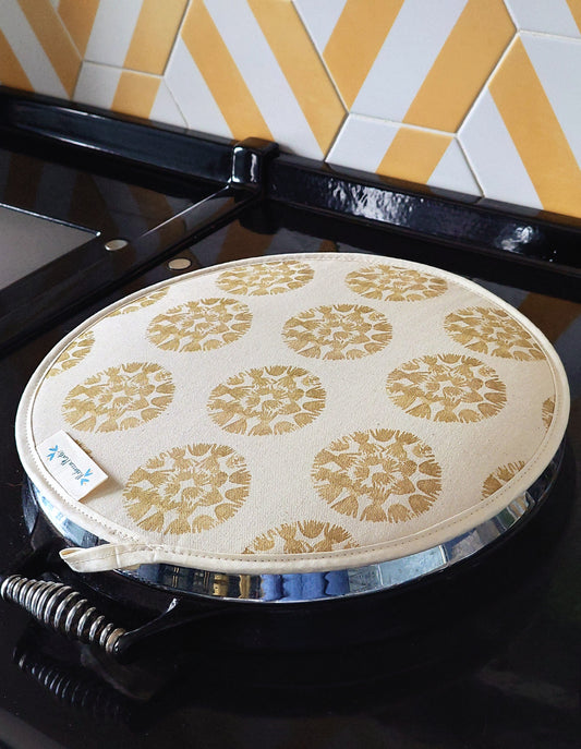 Organic Aga Hob Cover and Table Protector - Machair Clock Gold Green