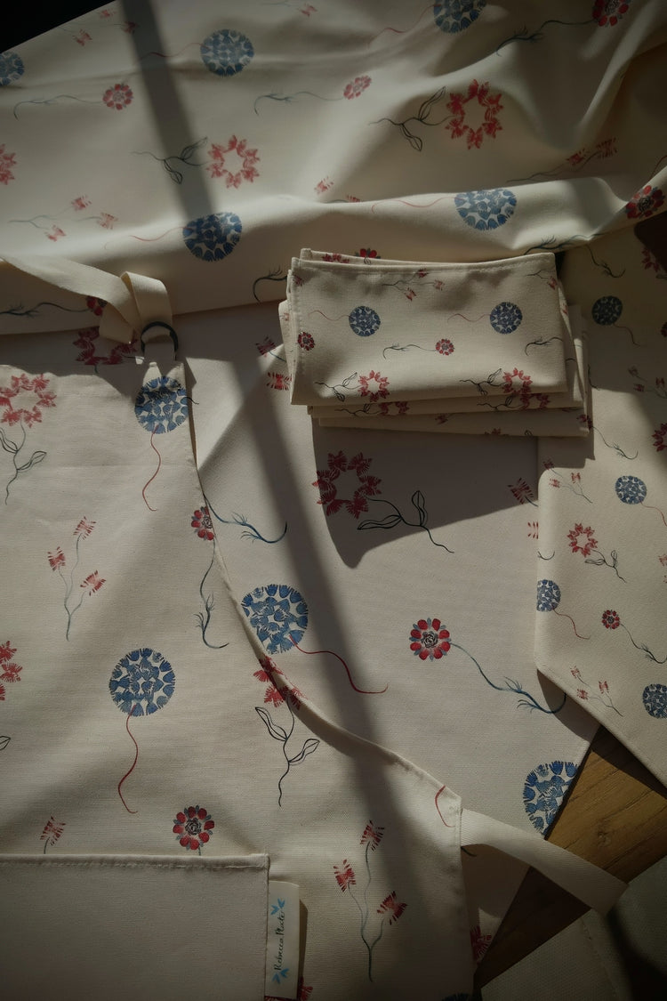 The Machair collection finds inspiration in the machairs of Scotland. Each flower is created from hand-painted watercolour brushstrokes through a mark making process that gives the design a unique quality.