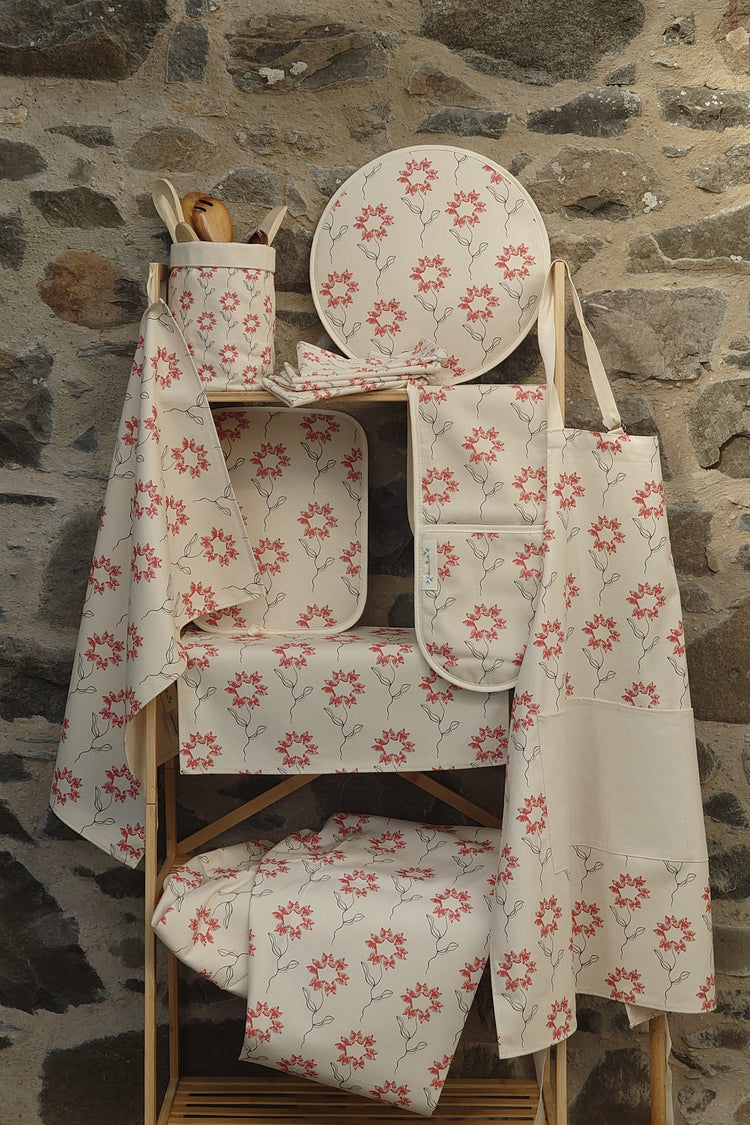 Organic Pot Grab and Oven Mitt - Machair Flower Red