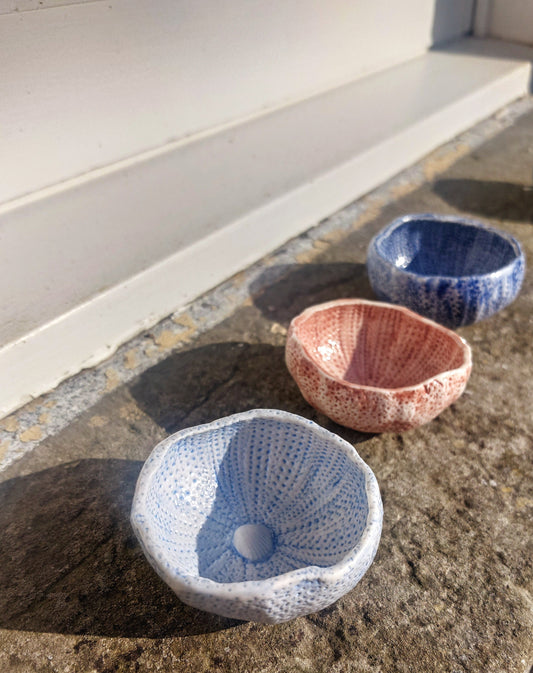A collection of entirely hand-built unique ceramics, imprinted with hand foraged finds from along Scotlands foreshore. Thoughtfully designed, hand painted and slowly made pieces, with heart, whilst in deep connection with nature.