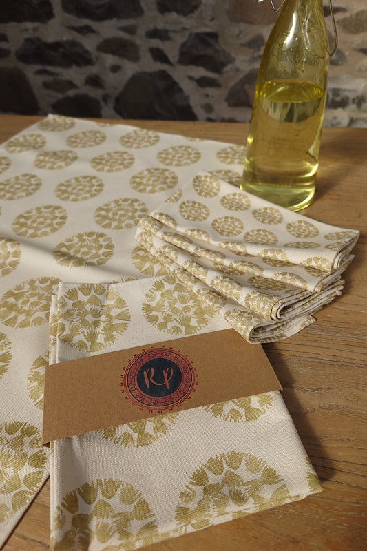 Organic Napkin - Machair Clock Gold Green